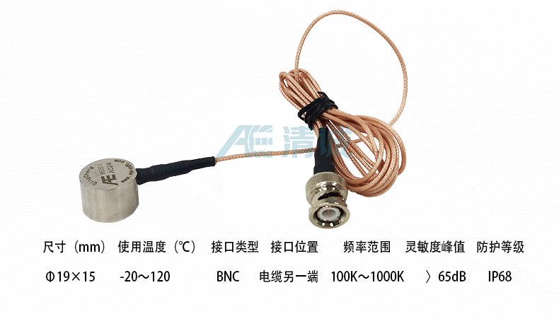 宽频带防水传感器。频率范围:100Khz~1000KHZ,谐振频率:500Khz,防护等级:IP68。采集到信号丰富,全面。...