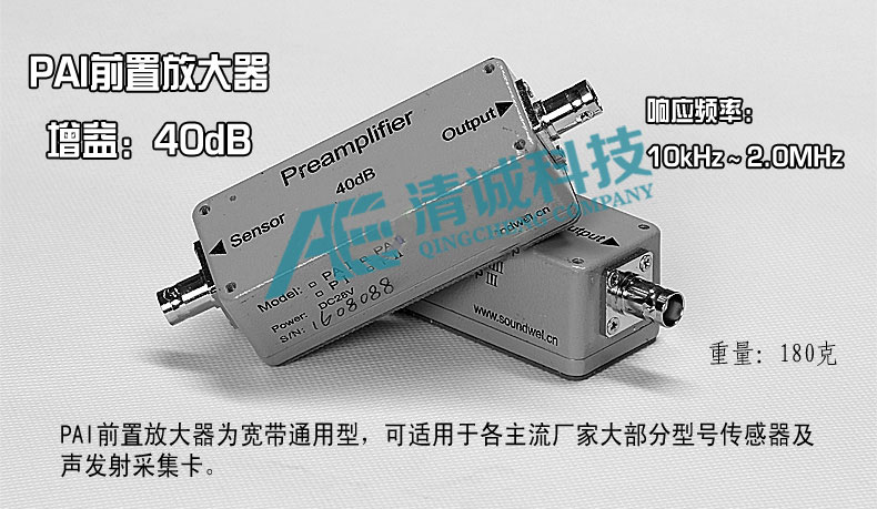 ● PAI前置放大器为宽带通用型,可适用各厂家的常见大部分型号的传感器及声发射采集卡