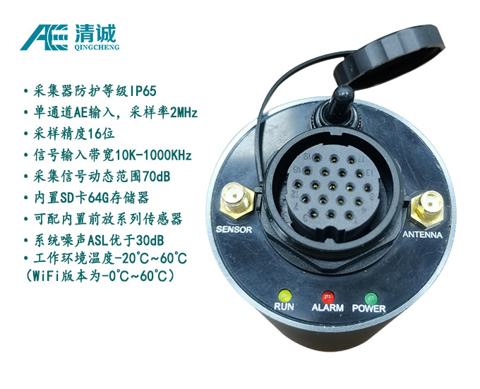 •智能声发射采集器包括传感器自带自诊断功能,能够实时确认设备运行状态是否正常。