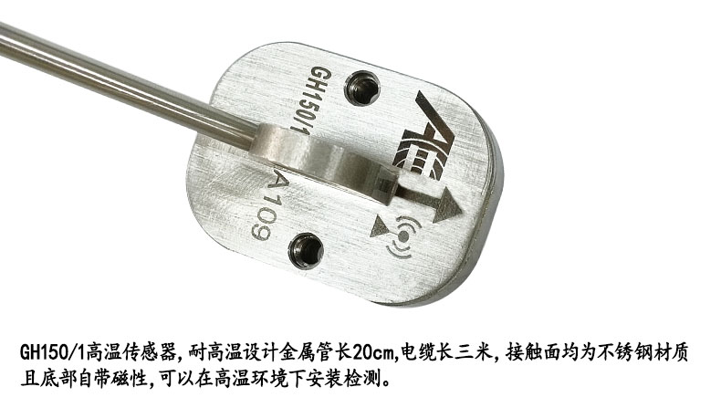 GH150/1高温声发射传感器(新款), 耐高温设计金属管长20cm,电缆长三米,接触面均为不锈钢材质且底部自带磁性,可以在高温环境下安装检测。