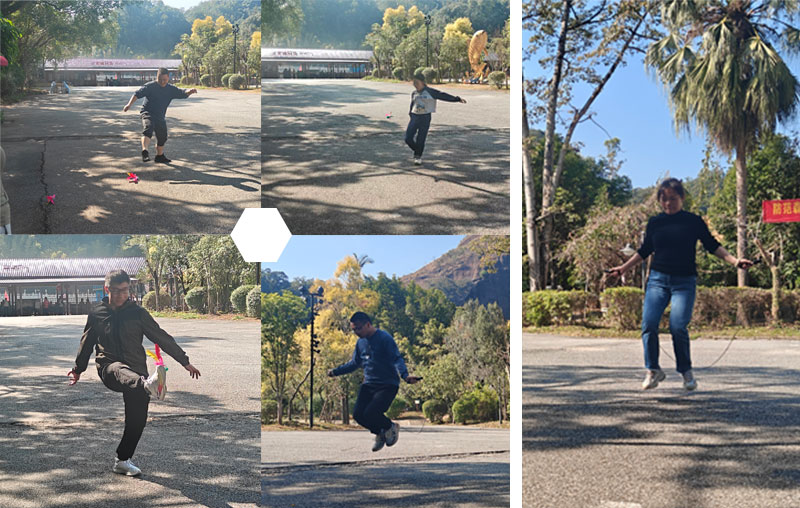 活动尾声,跳绳游戏将团队活力推向高潮。员工们分组站成一排,在统一节奏中集体跳跃,绳子飞旋如虹,划出一道道绚丽的弧线。在掌声与欢笑交织的欢腾中,为这场充满活力的团队活动画上圆满句点